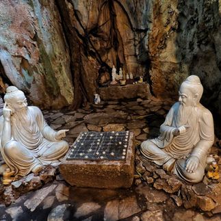 Сегодня мы приоткроем страницы военной истории. Расположенный на территории Дананга природный комплекс Мраморные горы долгое время служил пристанищем для партизанских отрядов объединённых сил севера. Заросшие непроходимыми джунглями, изрезанные трещинами, пещерами и туннелями горы, располагались напротив американской военной базы, что помогало бойцам совершать дерзкие налёты, а так же прятать оружие, провизию и раненных. Война закончилась, и сейчас, практически в каждой пещере находится буддистский храм или алтарь, но за колокольным перезвоном всё ещё можно расслышать эхо войны.
