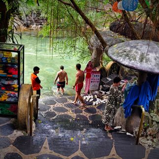 Пришло время отдыха. И нас ждёт день релакса. Мы не станем исследовать былое, а полностью погрузимся в наслаждение настоящим. Вьетнам слишком долго воевал, земле и людям необходим отдых, возможно, поэтому развлечениям здесь уделяется повышенное внимание. Хотсприн это большой природный парк с натуральными горячими бассейнами разной температуры, с аквапарком, зоопарком с тропическими птицами, ожившими динозаврами и тремя видами саун. Мы проведём здесь весь день, а вечером отправимся в корейский ресторан, где будем выбирать и готовить пищу самостоятельно.
