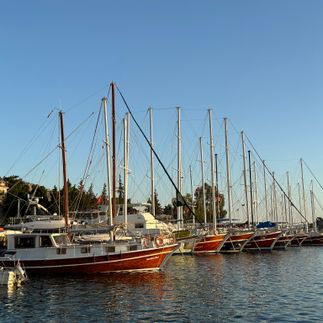 Стоянка на пирсе, есть подключение к воде и электричеству. Условие стоянки обед или ужин в ресторане.