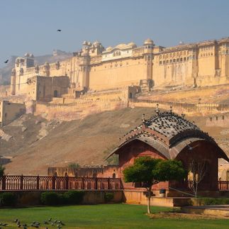 В Джайпуре, мы поднимемся на слонах в Форт Амбер - один из самых знаменитых достопримечательностей Джайпура, который входит в число лучших укрепленных сооружений в Индии и представляет собой необычайно красивый комплекс дворцов, залов, павильонов и садов. Строительство крепости-дворца из красного и белого песчаника было начато раджой Ман Сингхом в 1592г.