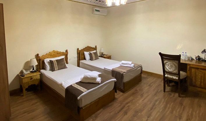 Групповой трансфер доставит вас в Хиву, где вы разместитесь в гостинице с 14:00. После заселения у вас будет свободное время, чтобы отдохнуть после перелета и самостоятельно познакомиться с городом.