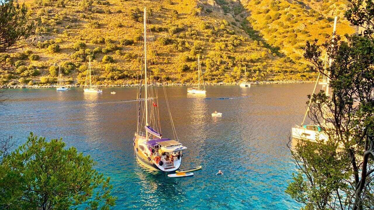 Ваши первые шаги к парусу, пройдут в живописных бухтах залива Фетхие. Якорные стоянки в диких бухтах, окруженных реликтовыми соснами.