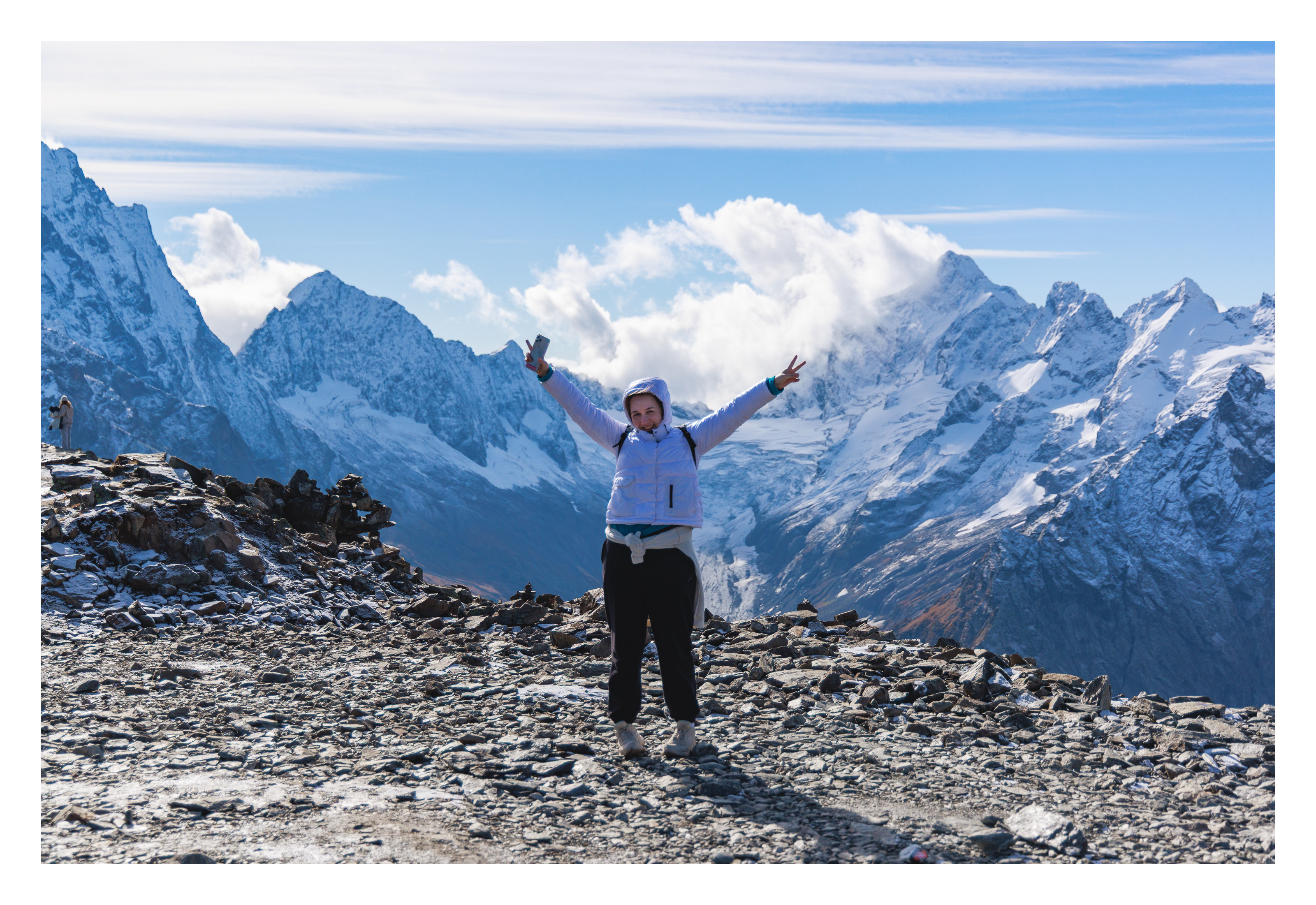 Далее едем в живописное ущелье Алибек - до альплагеря на внедорожнике - и потом легкая прогулка до водопада! А какие виды на ледник! Ни одно фото не сможет передать эмоций от увиденного! Примерно к 17ти часам возвращаемся в Домбай.