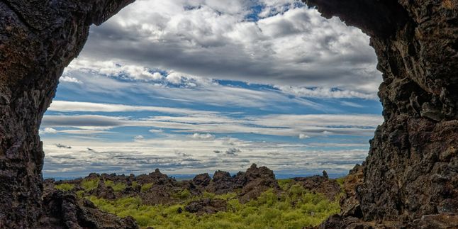 Диммуборгир лавовое поле с причудливыми скальными образованиями, напоминающими древние руины замка. По легенде, здесь находится вход в преисподню.