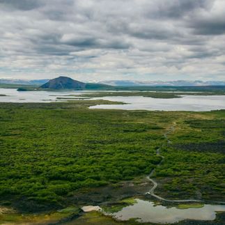 Изучаем регион озера Миватн — туристическая Мекка северной Исландии. Здесь, на сравнительно небольшом участке среди вулканического ландшафта, собрано большое количество природных достопримечательностей — это уникальная экосистема с богатой фауной (особенно птицами), псевдократерами, лавовыми образованиями (Диммуборгир) и геотермальной активностью.