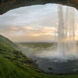 Водопад Сельялэндсфосс — узкий поток воды от реки Сельяландса, идущий от ледника Эйяфьятлайокудль, падающий с высокой скалы 60 метров, которая когда-то была береговой линией Исландии. За водопадом есть широкий грот, по которому идет тропа, что позволяет полностью обойти водопад.