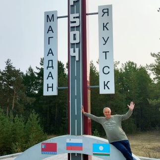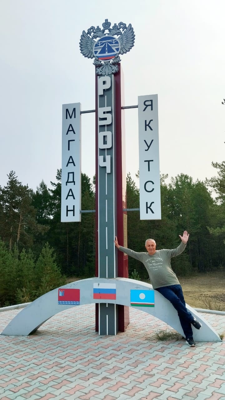 А в завершение дня сделаем историческое фото у первого километра Колымском трассы в Нижнем Бестяхе. Отправление на размещение.