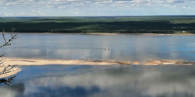 Продолжаем водное путешествие: следующий пункт - фотостоп у Тукулана - огромной, таинственного происхождения песчаной горы над рекой Леной, не имеющей аналогов в мире. Её длина составляет целый километр, а высота - 150 метров! Южный склон почти отвесный (80), северный - более пологий (примерно 60).