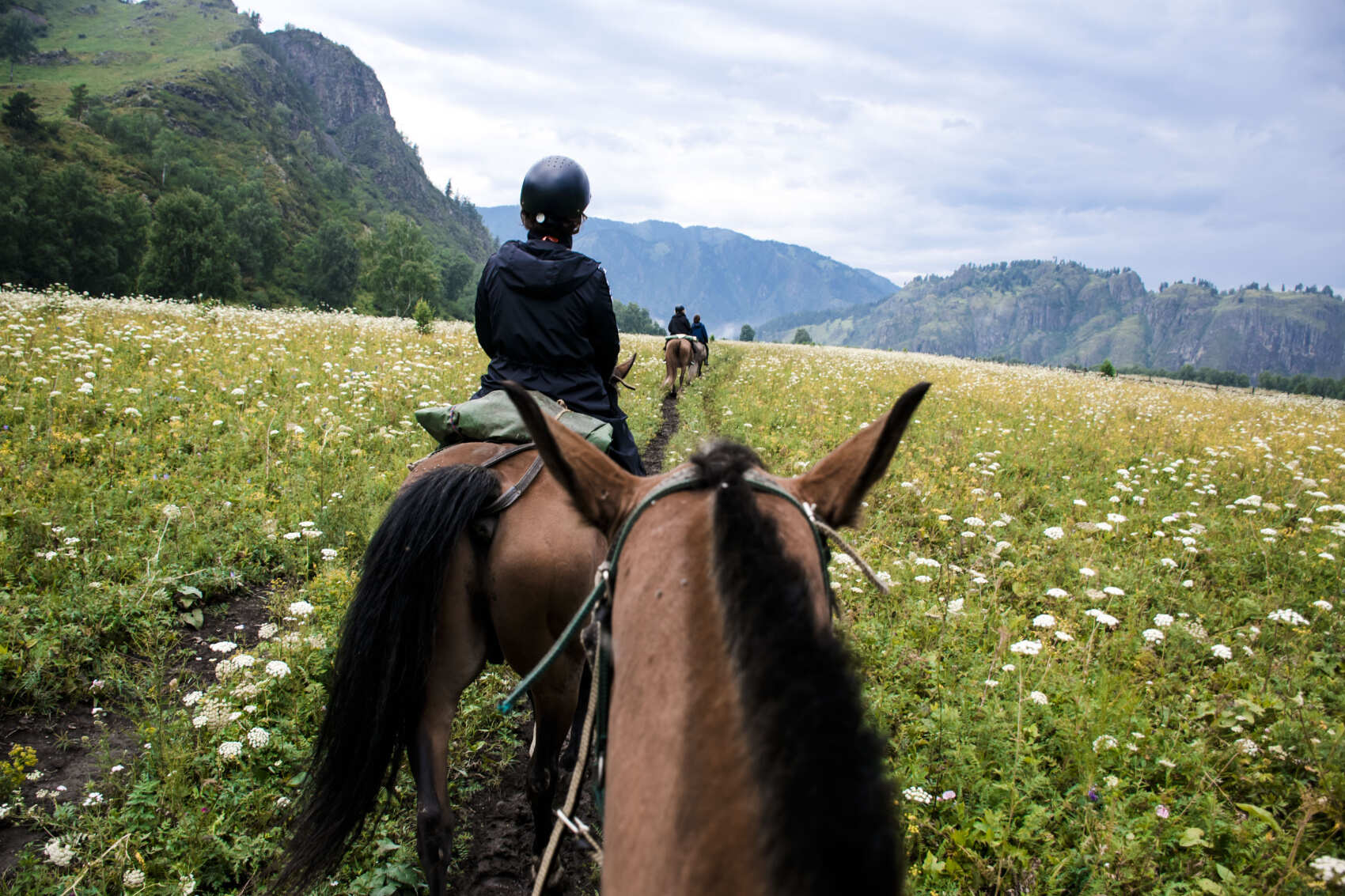 Мы отправимся на конную базу, которая занимается полным циклом организации конных прогулок: от разведения и выездки лошадей до конструирования специальных мягких сёдел и обучения желающих основам верховой езды в условиях горной местности.