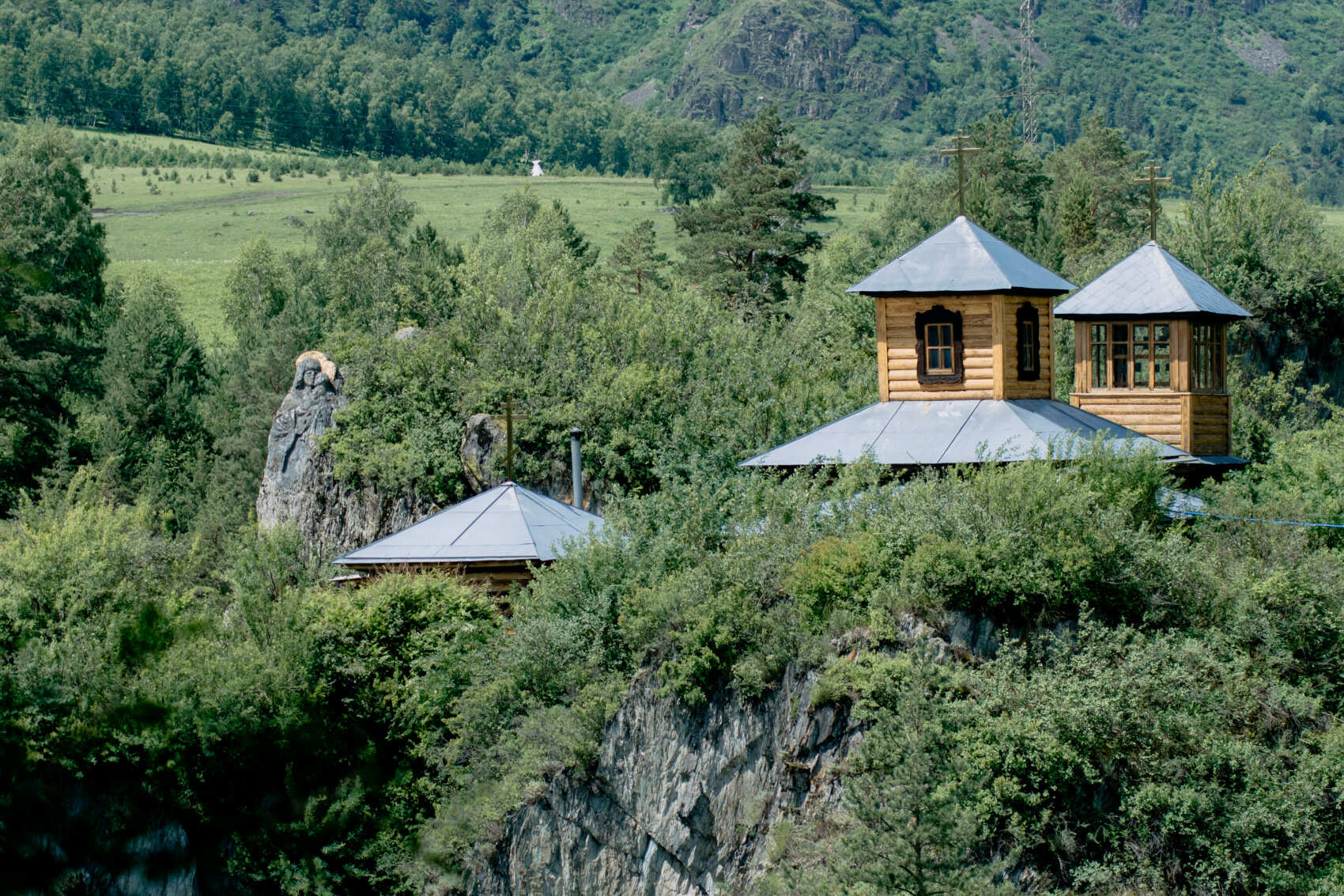Чемал — одно из самых популярных мест отдыха в Горном Алтае. Ведь здесь не только мягкий климат, но и большое количество солнечных дней в году, чистейший воздух и хвойные леса. Одной из достопримечательностей Чемала является остров Патмос с православным храмом, построенным в 1849 году. Там же расположился женский скит Иоанна Богослова барнаульского Знаменского монастыря. Для того чтобы увидеть часовню, вам придётся преодолеть подвесной мост над рекой Катунь.