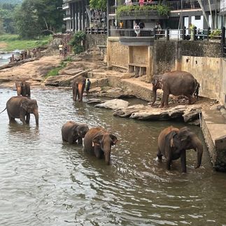 Утро неспешное. Завтрак, где десерт подают визуальный. Слоны нежатся в реке, ты — в кресле с чашечкой цейлонского чая. Идеальное утро выглядит именно так.