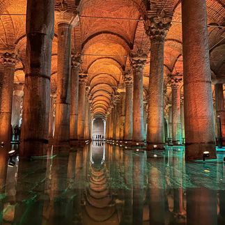 Цистерна Базилика — прохлада, полумрак, отражения в воде. Здесь город ощущается не глазами, а телом: как сцена из фильма.