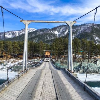 В пути нас ждёт живописная дорога: снежные равнины Алтайского края постепенно уступают место величественным хребтам республики Алтай, а воздух наполняется ароматом хвои и свежести.