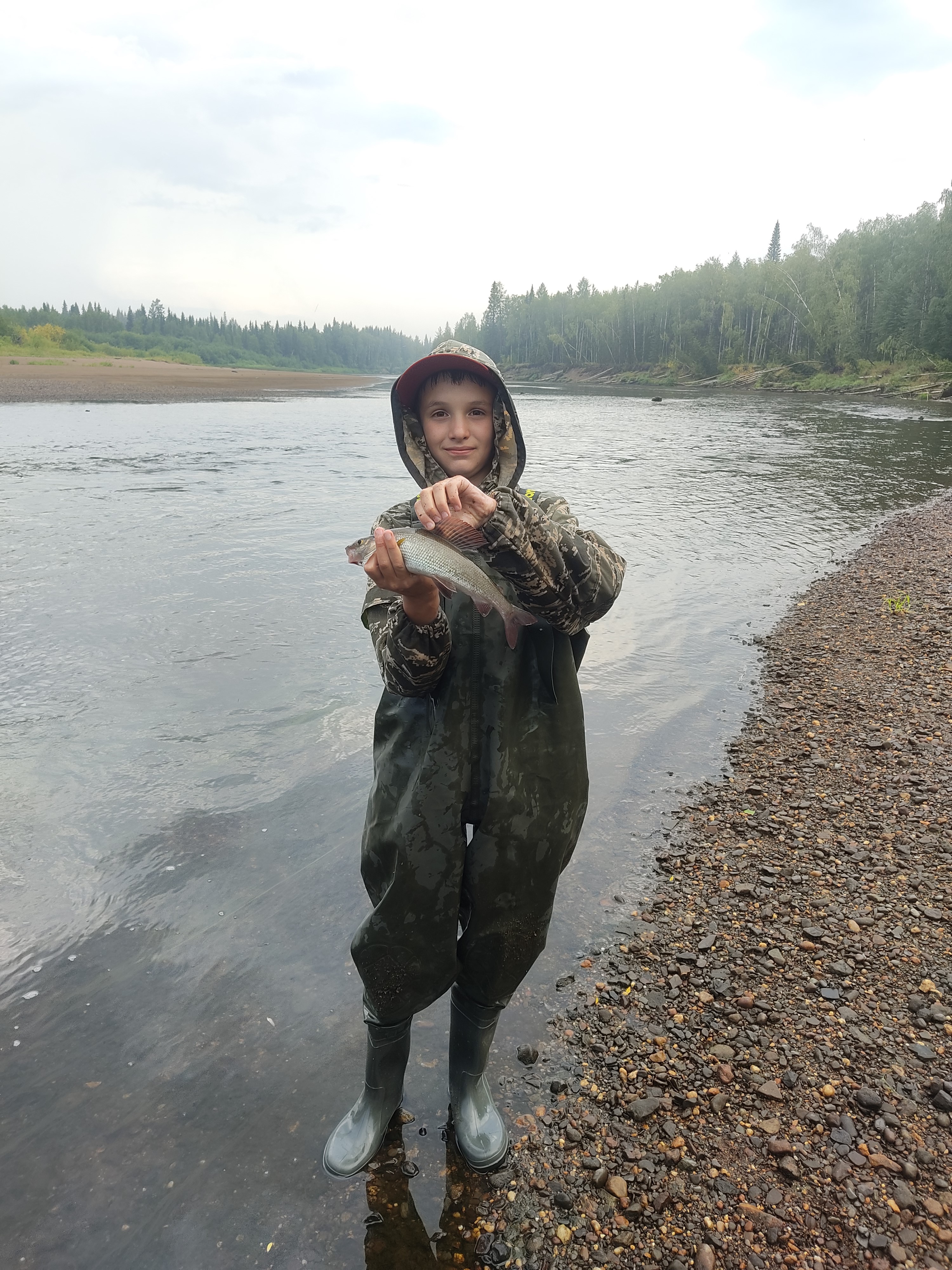 Облавливаем места мы обычно зайдя в воду и проходя по перекатам. Ищем места, где находится хариус. Наш гид все подскажет и расскажет, как эффективнее его поймать.