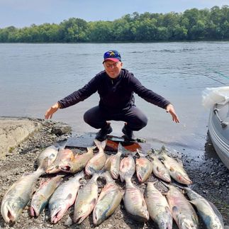 Рыбалка целый день на лодке: Мы работаем по реке и точкам динамично — не стоим на одном месте, а ищем лучшие условия. В зависимости от сезона возможна рыбалка на чавычу, нерку, кету, горбушу, кижуча.