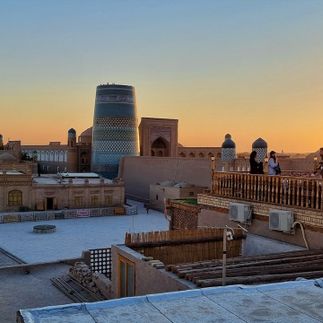 Сегодня отправляемся в Хиву. Дорога пройдёт через пустыню Кызылкум вдоль реки Амударьи. Мы сделаем несколько остановок, чтобы насладиться необычными пейзажами пустыни и погулять по барханам красноватого оттенка. Зайдём на смотровую площадку, чтобы полюбоваться видом на Амударью.