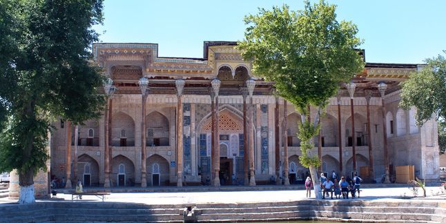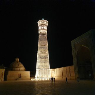Осмотрим удивительную старинную крепость Арк, напоминающую песочный замок, комплекс Пои-Калян, медресе Абдулазиз-хана и Улугбека.