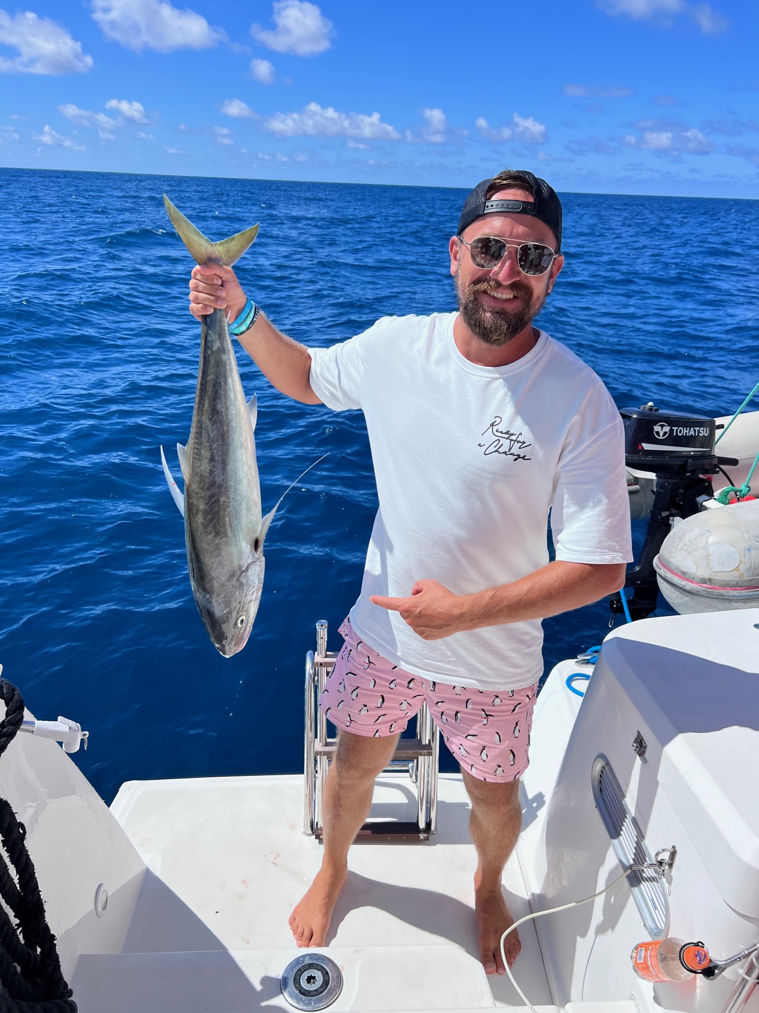 По дороге нас конечно будет ждать океанская рыбалка. Азартно пойманный тунец и махи махи, сразу попадают под нож шефа и превращаются в сашими и тар тары. А позднее в вечерний гриль.