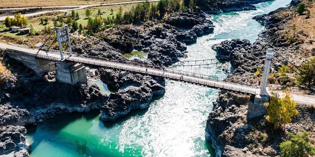 Что нас ждет дальше? Мы отправимся через великолепный подвесной мост над бурной рекой Катунью к потрясающим скалам Зубам Дракона. Они выглядят как острые и массивные зубы, возвышающиеся в реке. Здесь отлично подходит для спокойной прогулки под звуки шума реки. Мы можем сидеть на валуне, созерцая реку и погружаясь в состояние медитации. Или создать свою пирамидку из камней.