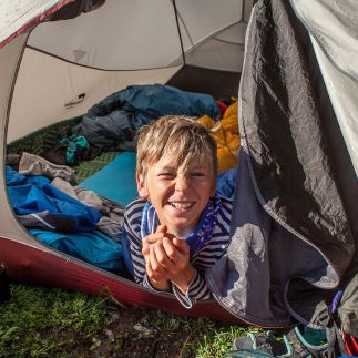 Мы живём в уютном палаточном лагере у подножья Эльбруса: отдельные палатки для каждой семьи, кухня-столовая, где мы готовим еду на горелках и собираемся на завтрак и ужин. Каждый день назначается дежурная семья — она готовит для всех, а инструктор при необходимости помогает с организацией и процессом. В лагере оборудован походный туалет и зоны для умывания — всё продумано так, чтобы быть ближе к природе, не жертвуя удобством. Это настоящий поход, но с максимальным комфортом для детей и родителей.