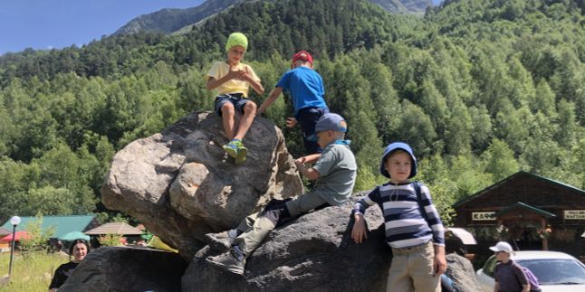 Первый выход в горы — и сразу сюрприз! С высоты каменных грибов и немецкого аэродрома весь Эльбрус виден как на ладони. Дети будут в восторге от причудливых скал, а взрослые застынут перед панорамами, от которых захватывает дух. Возвращаемся в лагерь уставшие, но счастливые. Вечером — новая порция астрономических открытий и истории о созвездиях.