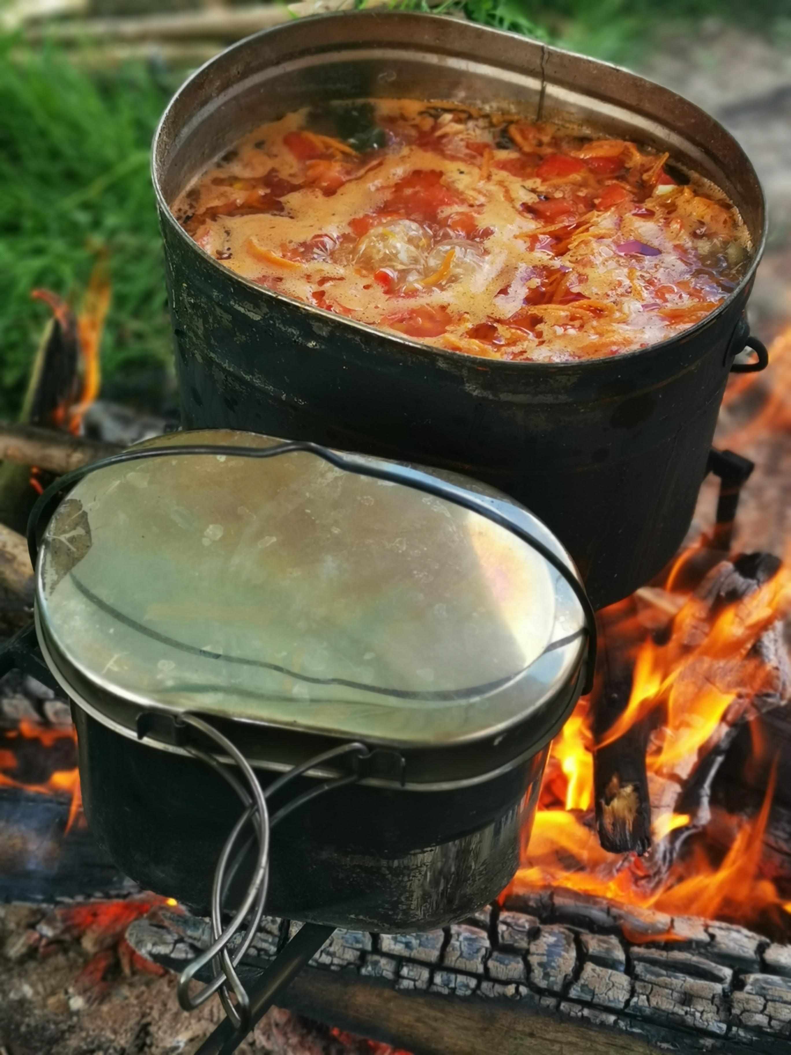 вместе готовим на костре