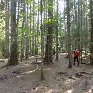 Гора не такая уж и мокрая. Это национальный парк Тара - довольно известный в Сербии. Нас ждёт классный видовой маршрут длиной в 16 км. Вчера мокли, а сегодня ножками топаем, просто замечательно. После прогулки переезжаем в Боснию и Герцеговину - длинное название, страна одна. Живём на природе в деревуше с названием Романия.