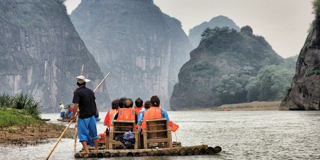 Сегодня нас ждёт одно из самых ярких впечатлений путешествия — сплав на бамбуковых плотах по реке Юйлун. Тихие воды отражают изящные карстовые горы, туман медленно поднимается над холмами, а повороты реки открывают всё новые живописные виды. Это момент полного единения с природой — только вы, река и величественные пейзажи Южного Китая.