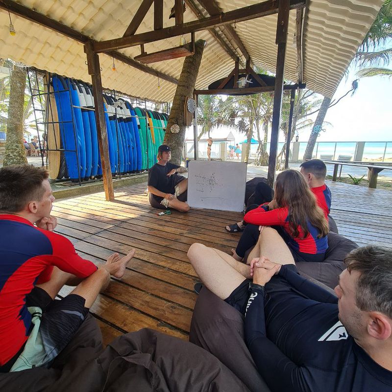 - разделение участников на группы в зависимости от уровня серфинга, выезды на рифы для продвинутого уровня серфинга при подходящем прогнозе волн;