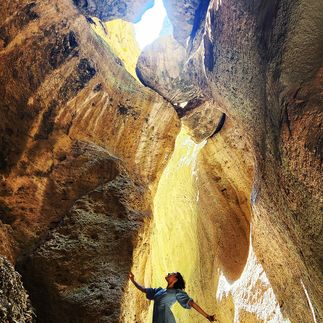Пройдёшь сквозь Карадахскую теснину — место, где стены смыкаются над головой, а свет играет так, будто ты попал в другой мир