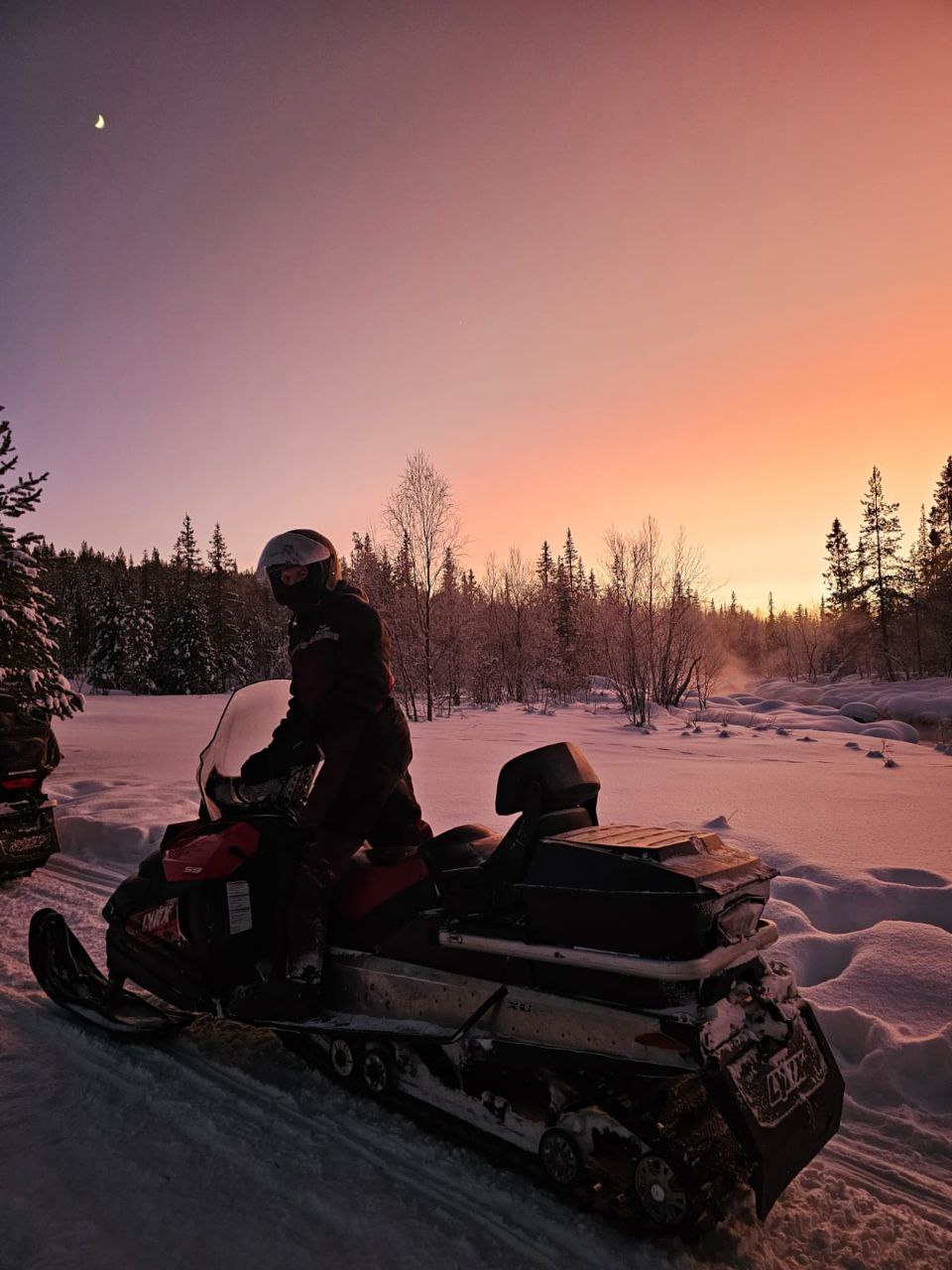 К назначенному времени встречаемся на базе Eco Village Park, либо за доплату организовываем вам трансфер из Мурманска. Стоимость такси от города около 500 рублей. Приезжать следует за 10 минут до начала. В назначенное время собираемся, провожу инструктаж, объясняю правила управления снегоходом, меры техники безопасности. Далее экипируетесь (Комбинезон, подшлемник, перчатки, шлем) и размещаемся по снегоходам. Выезжаем на маршрут, катаемся, доезжаем до чума в лесу, где в 16 веке проживали Саамы, у костра пьем чай с пирогом и возвращаемся на базу. По возвращению на базу вы (опционально) можете посетить баню на дровах, искупаться в проруби и попариться в горячем чане, который подогревается огнем. На снегоходах можем отправится и в более продолжительную поездку - на полуострова Рыбачий и Средний, в Дальние Зеленцы либо по тундре.