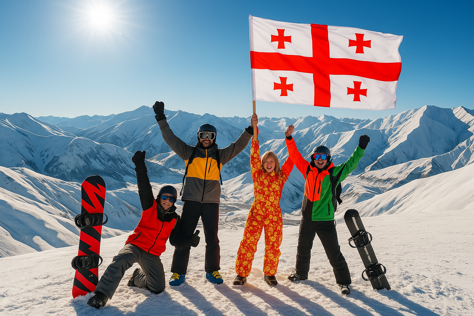 - Фотосессии в горах с грузинским флагом и лыжебордами