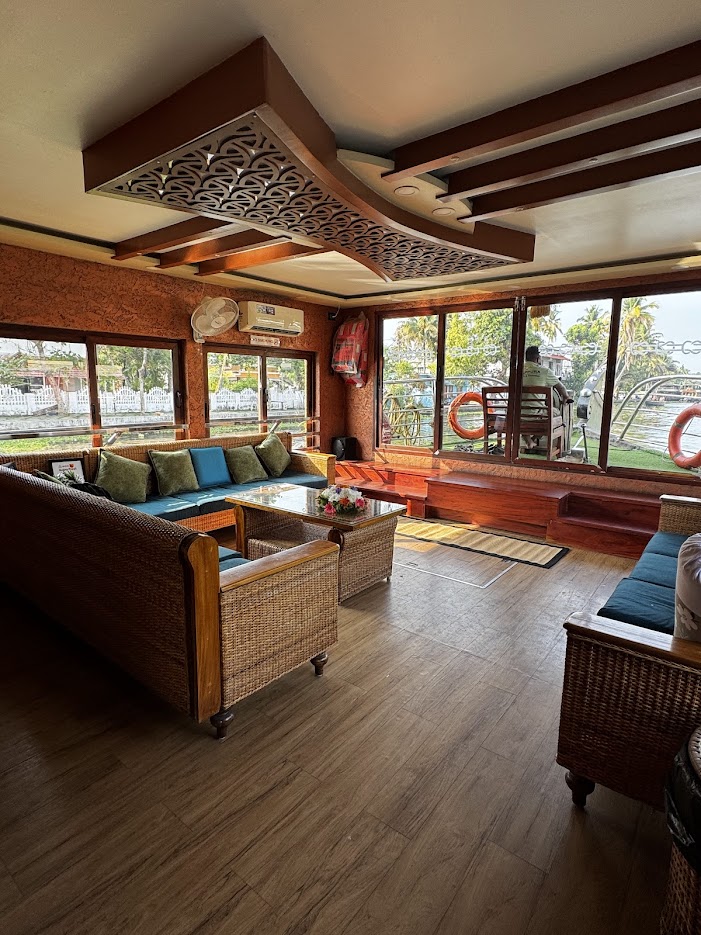 Хаузбоат — это настоящий плавучий дом, где вы проведете ближайшие два дня, наслаждаясь неспешным ритмом жизни на воде. Плавание по живописным заводям Кералы откроет перед вами пейзажи, полные тропической растительности, рисовых полей, рыбацких сетей и маленьких деревень вдоль берегов.