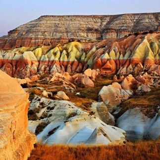 А после этого мы отправимся в долину Пашабаг - удивительное место, напоминающее своими пейзажами иллюстрации к сказкам. Хотя название местности переводится как виноградники паши, примечательна она не виноградниками, а необычными скальными образованиями в виде каменных грибов, известными еще как дымоходы фей. Другие каппадокийские долины тоже изобилуют этими причудливыми природными изваяниями с грибовидными шапками, но в Пашабаге они бывают двух- и даже трехглавыми. В таких грибах-кельях селились монахи, поэтому местность также называют долиной Монахов.