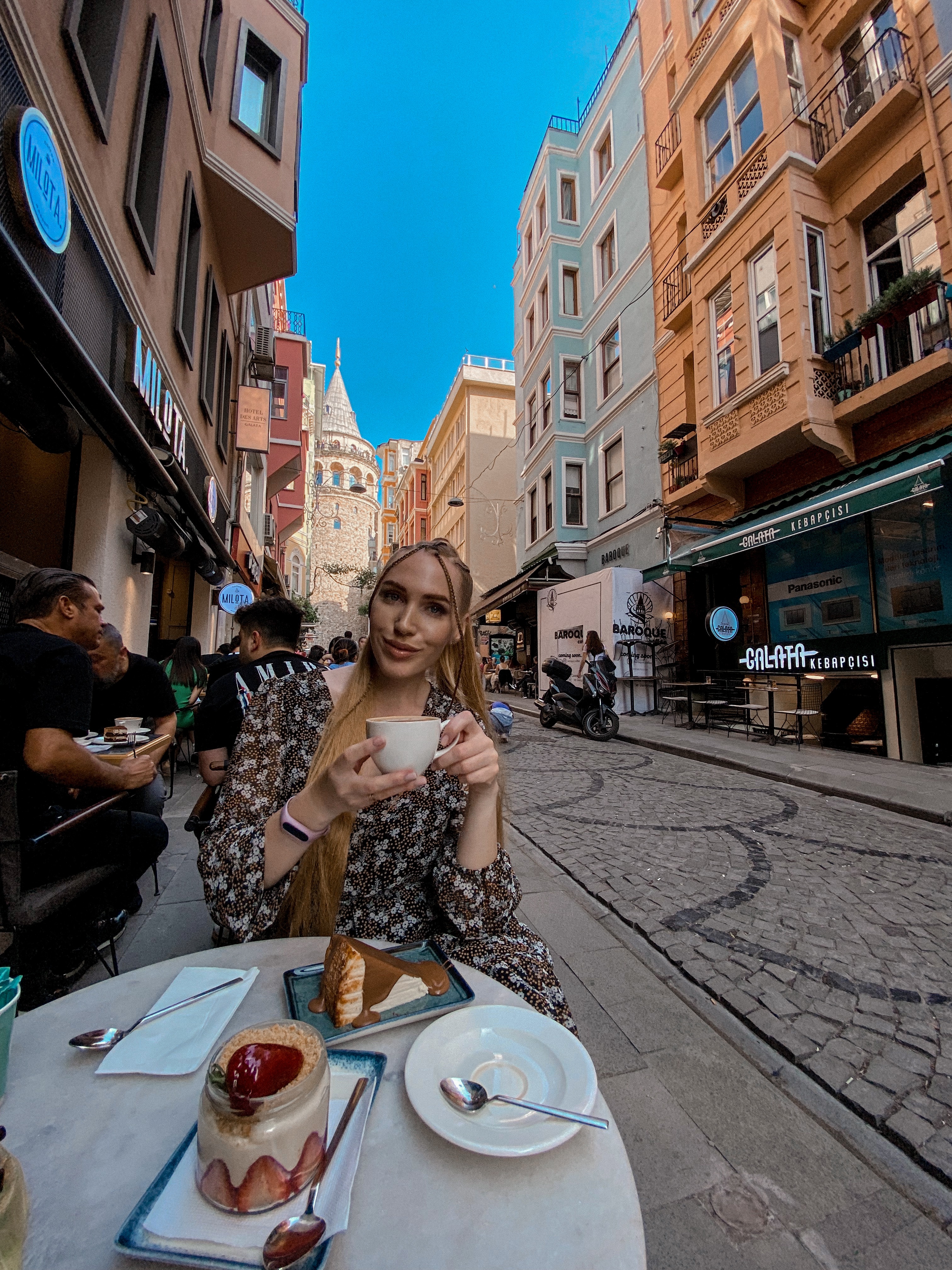 Самый европейский район Стамбула Бейоглу, где 100 лет назад жили исключительно иностранцы. Французская застройка, винтажные магазины, отели-музеи и террасы. Сделаем волшебные фотокарточки на террасе с видом на Галатскую башню и по желанию насладимся чизкейком Сан-Себастьян.