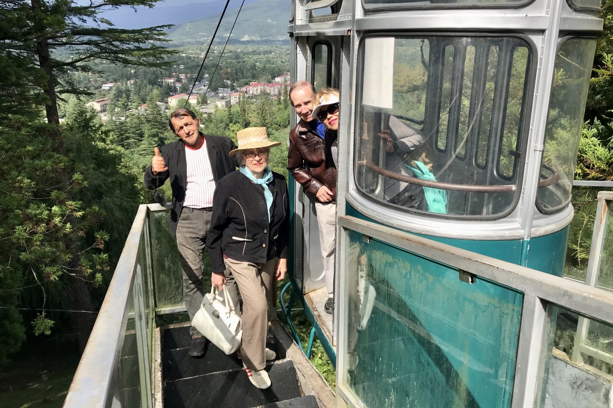 Сегодня мы гуляем в окрестностях Мартвили – небольшого городка, название которого переводится с грузинского как «день святого духа». Там расположен уникальный монастырь, освящённый в честь Успения Пресвятой Богородицы. Он стоит на высоком холме, и к нему ведёт канатная дорога. На автомобиле тоже можно подняться, можно и пешком – чуть больше 700 м вверх, но «подлететь» к обители намного интереснее.