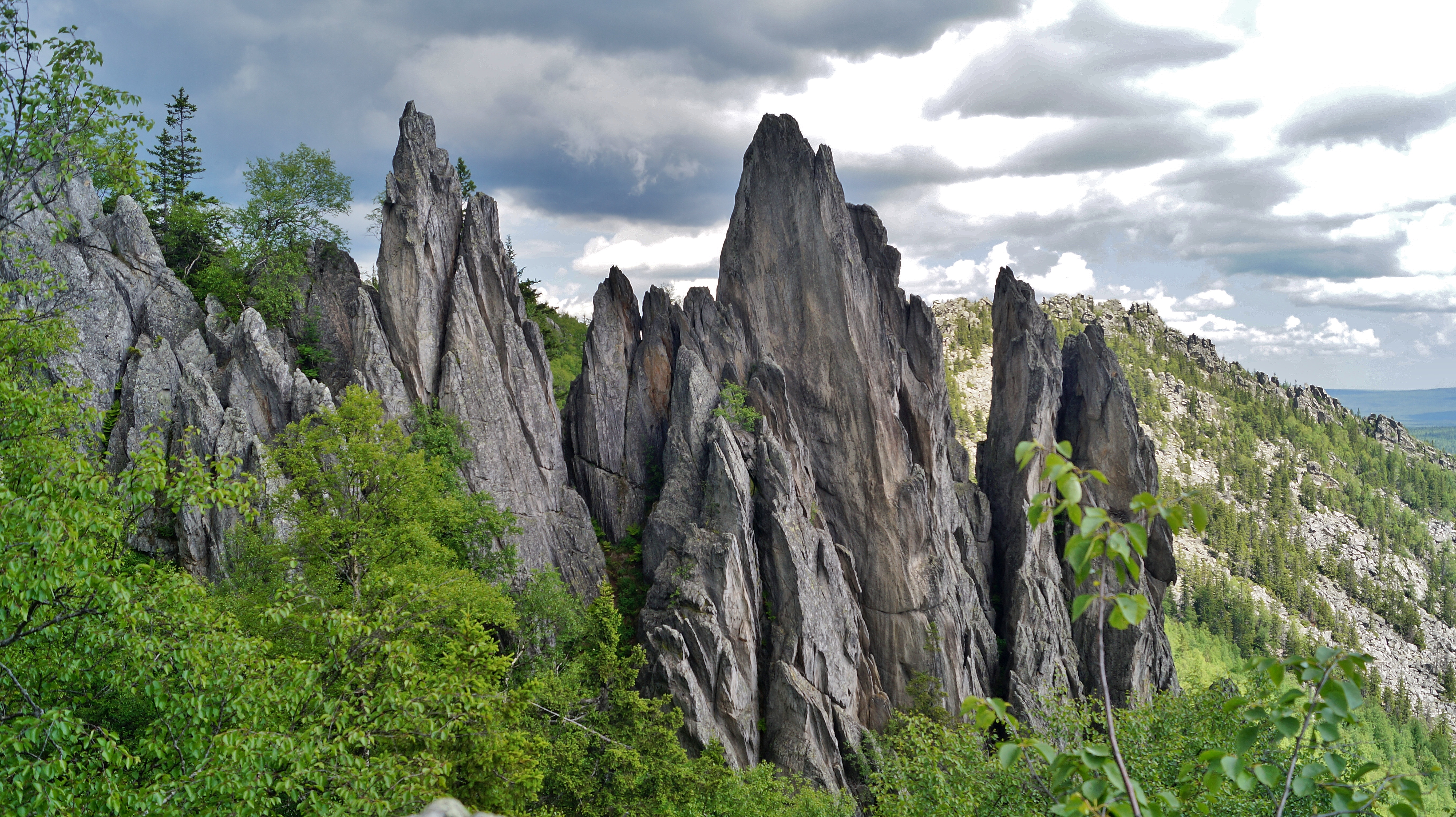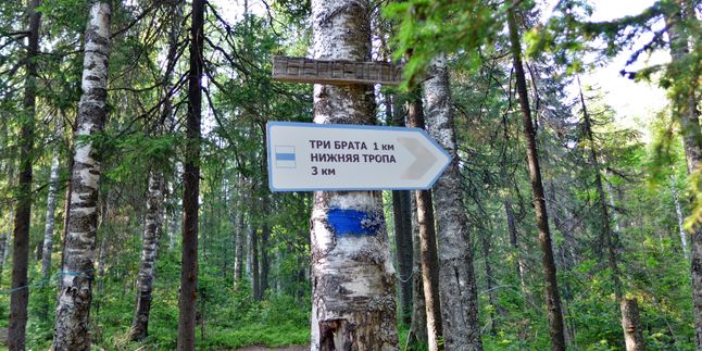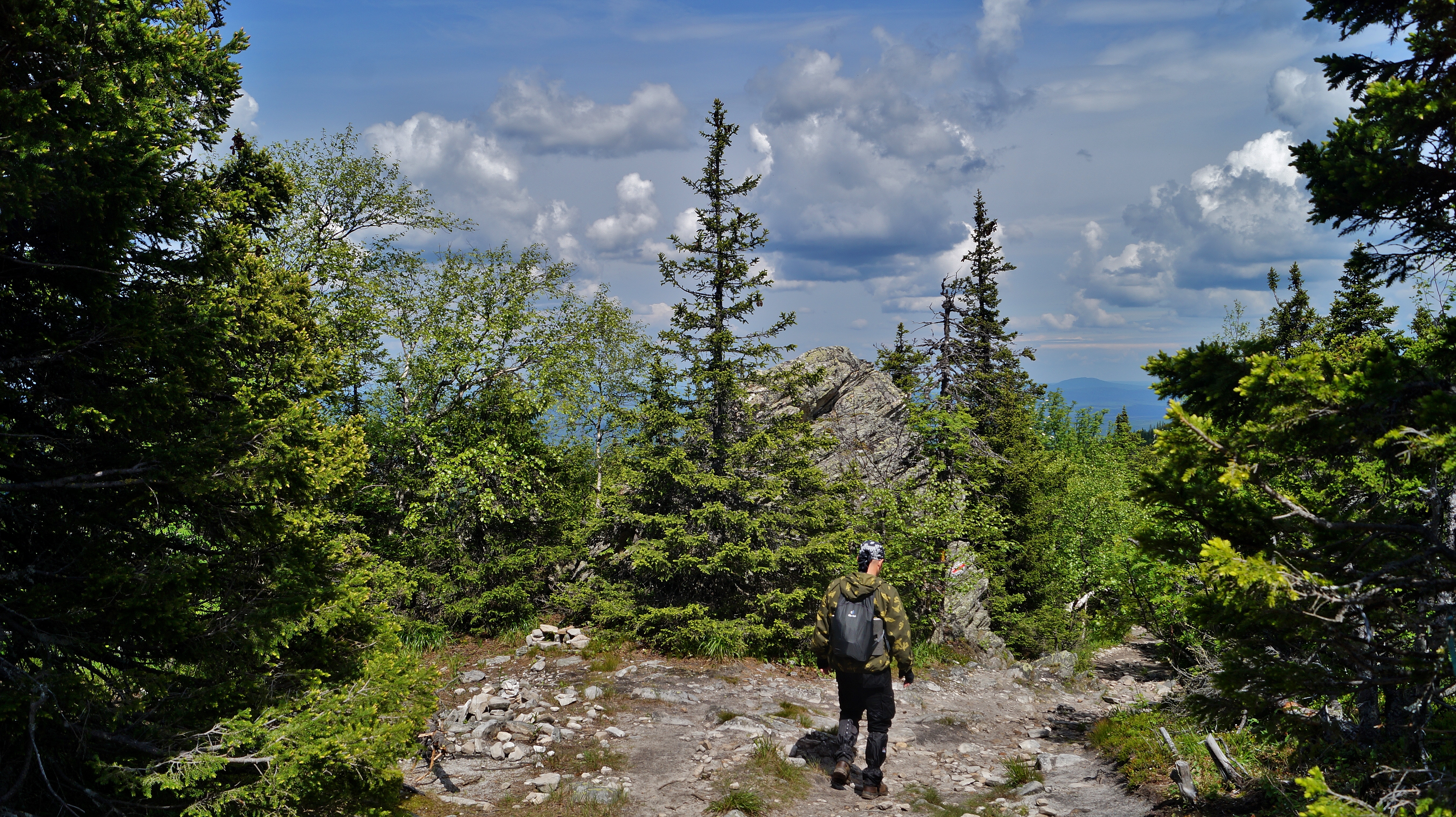 Выход на тропу. По тропе через урочище Три Брата, любуясь скальными останцами, спускаемся к развилке Стрелка и от нее поворачиваем на Метеостанцию. Попыхтев 4 км, мы попадаем на высокогорное плато Дальнего Таганая.