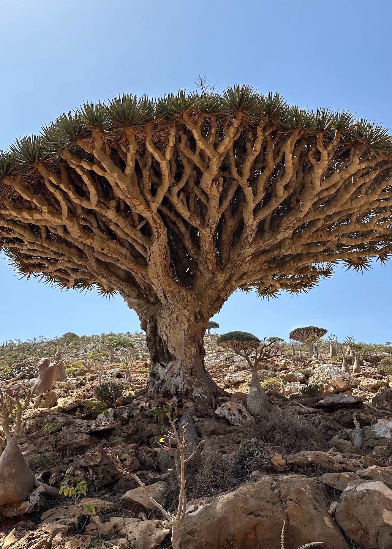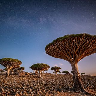 После завтрака мы отправимся в Хомхил — одно из самых впечатляющих и фотогеничных мест Сокотры, где природа выглядит так, будто это другой мир. Вместе с местным гидом мы прогуляемся по, кажется, бесконечному лесу драконовых деревьев и бутылочных деревьев — символов острова и его древней истории.