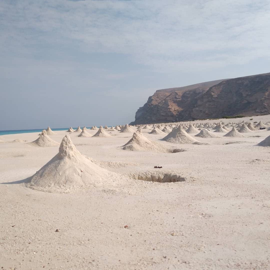 Далее нас ждёт один из самых впечатляющих пейзажей острова — песчаные дюны Захек, самая большая «пустыня» Сокотры. Здесь золотые волны песка уходят за горизонт, а среди дюн можно встретить верблюдов, неспешно бродящих по этому сюрреалистичному ландшафту. Это идеальное место для эффектных фотографий и короткой прогулки.