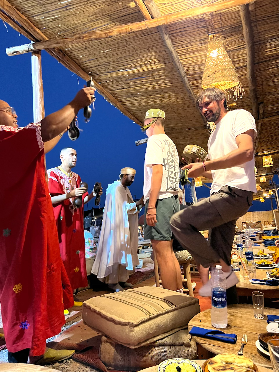 Мы посетим кочевников, познакомимся с местным бытом, попробоуем ароматный чай и увидем ремесленные мастерские. А вечером — ужин в берберском лагере: традиционные блюда, живые выступления музыкантов и танцы, создающие неповторимую атмосферу пустыни.