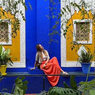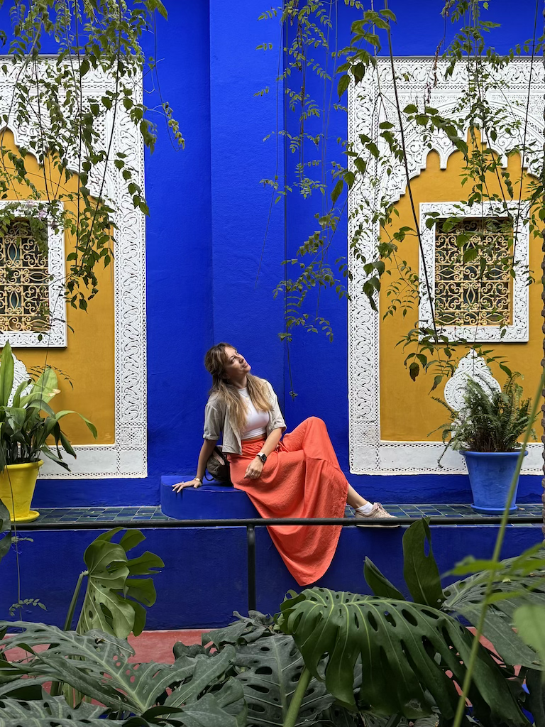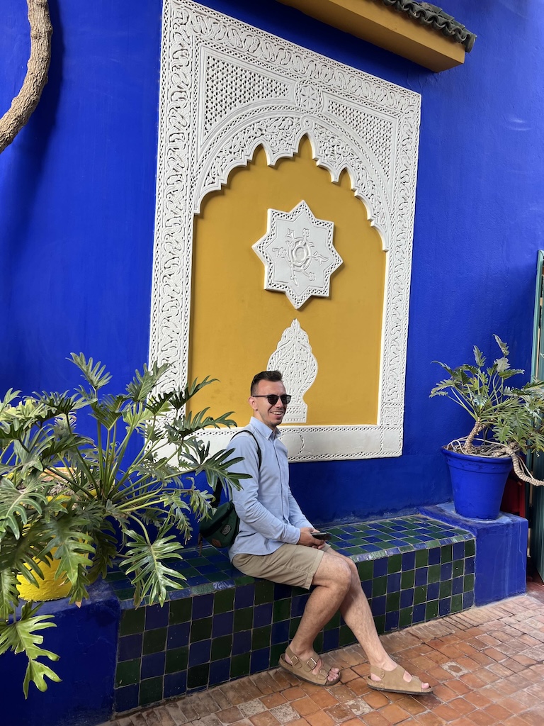 Особое место в нашем маршруте — Сад Мажорель, любимый Ивом Сен-Лораном. Этот сад словно пропитан его духом: яркие краски, экзотические растения, знаменитый Majorelle Blue. Здесь покоится прах Сен-Лорана среди роз и зелени, а каждый уголок наполнен романтикой и вдохновением — настоящий рай для фотографий и созерцания красоты.