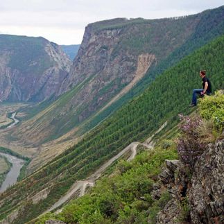 Пеший спуск по серпантину Кату-Ярык в Чулышманскую долину 3,5 км; сброс высоты 800 м.