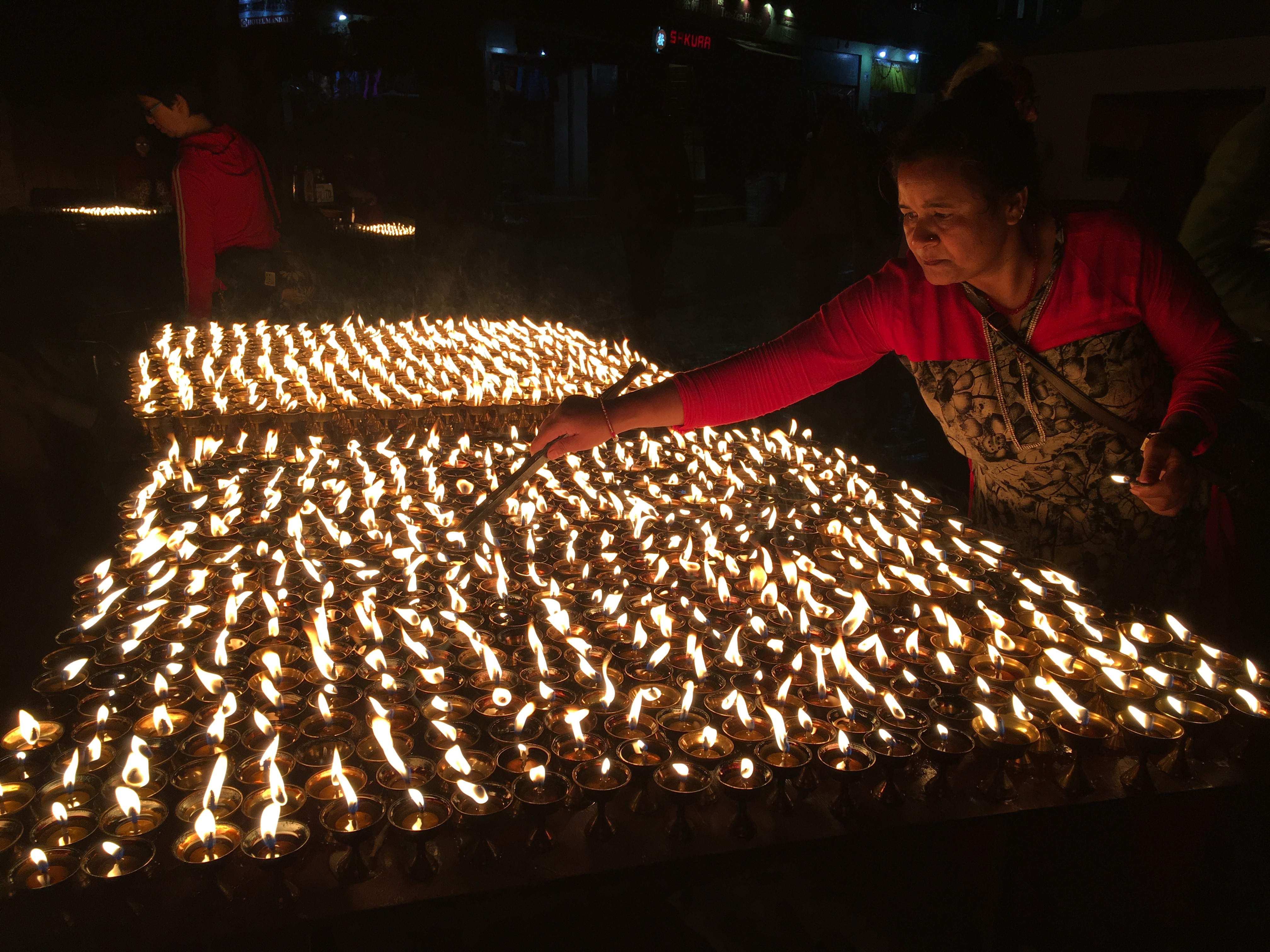 В 50-60 года Покхара являлась мировым центром хиппи, куда съезжались люди из разных мест планеты и беззаботно и мирно жили тут. Атмосфера праздника, счастья и легкости до сих пор здесь сохраняется. Поэтому, вечером нас ждет множество ресторанов и баров.