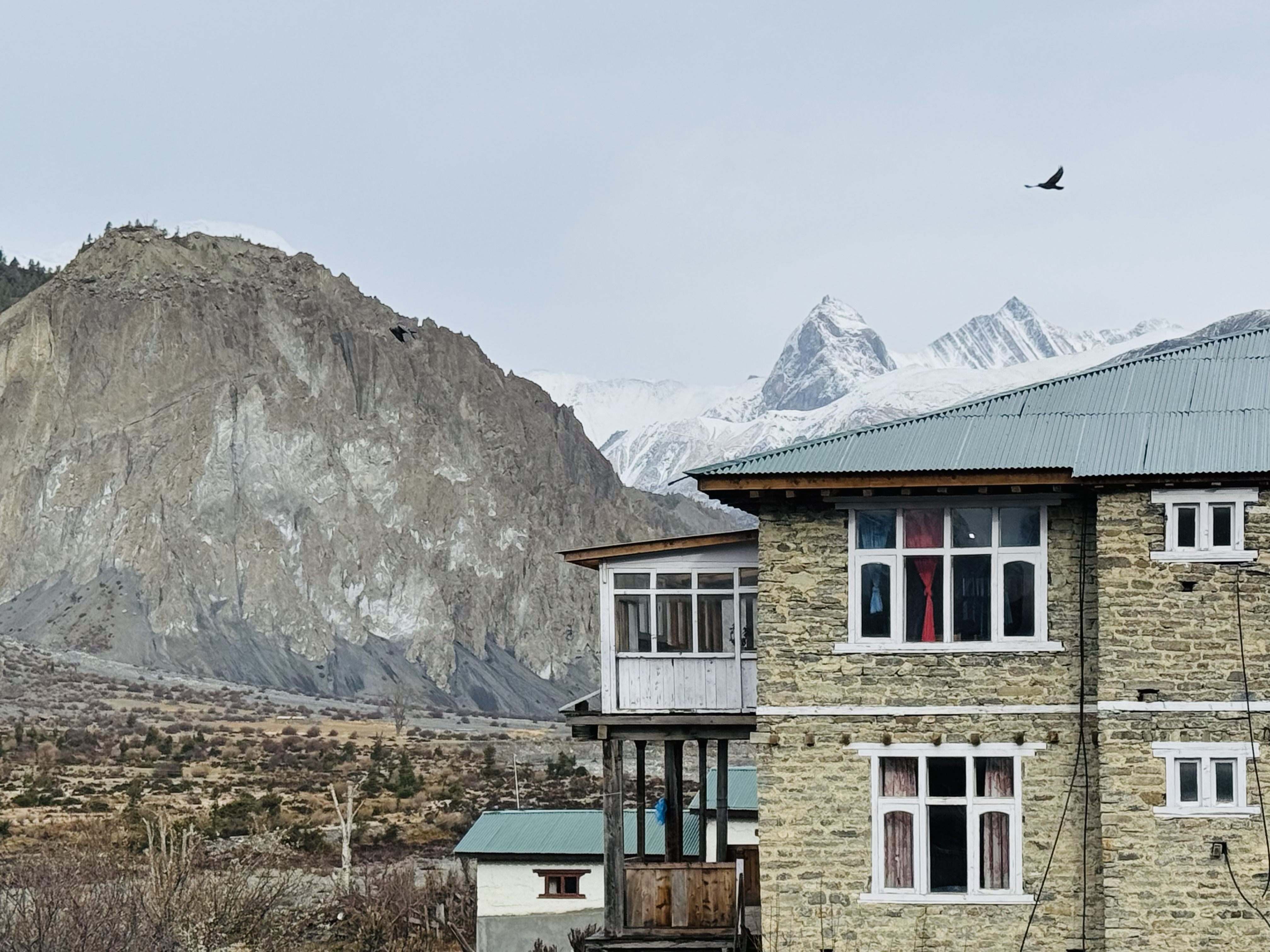 В Верхнем Писанге заселяемся в лодж и отправляемся на прогулку к буддийскому монастырю. С панорамной площадки монастыря открывается захватывающий вид на массив Аннапурны и пик Тиличо (7134 м).