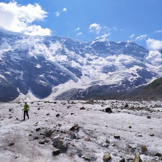 Подъем к водопаду Жигитджи. Выход на экологический маршрут к языку ледника Уллучиран. Переход к леднику. Обед. Возвращение в лагерь.