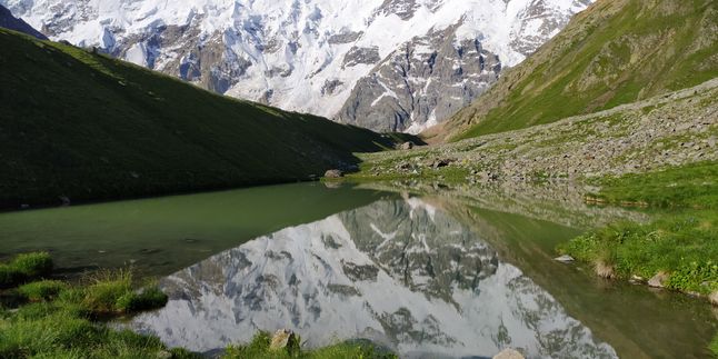 Переход в ущелье Безенги. Подъем к леднику Уллучиран. Переход по леднику. Подъем к стоянке Баран-Кош. Посещение озера на стоянке. Обед.