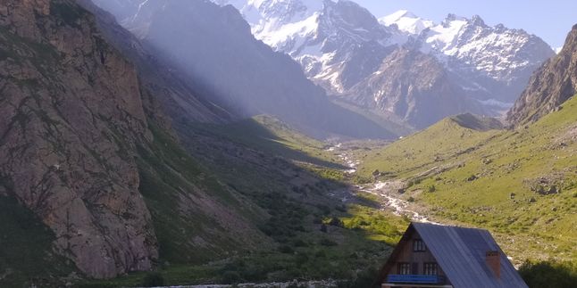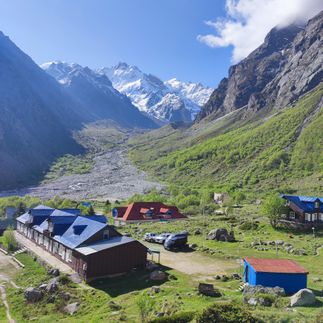 Спуск в долину реки Черек Безенгийский. Трансфер в альплагерь. Ужин. Свободное время. Вечернее чаепитие.