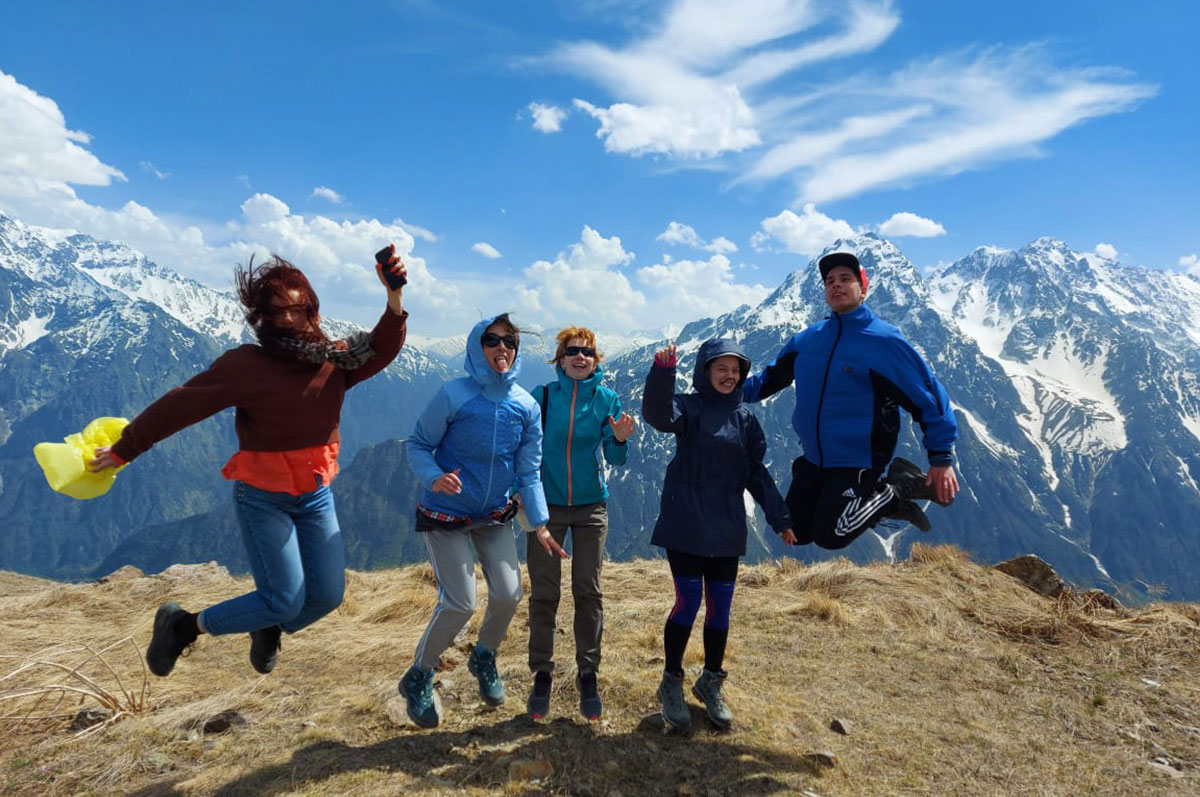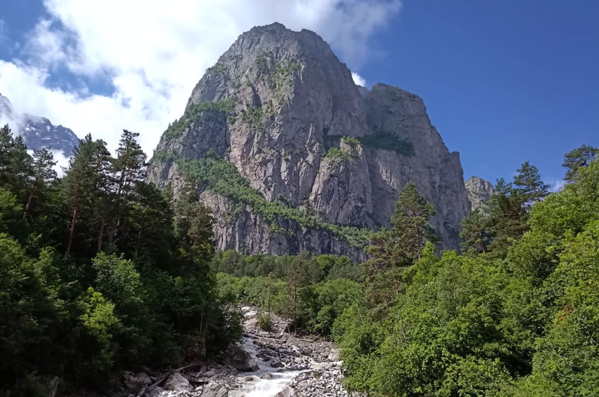 Мы увидели шикарный водопад Шагацикомдон (и даже научились выговаривать его название без запинок, дабы вернуться домой), побывали на двух ледниках – Сказском и Цейском. Шквалистый ветер на Сказском леднике сносил группу с ног, а уже через час солнышко внизу так пригревало, что на плечи лег первый южный загар. На лесных тропах вдыхали густой сосновый аромат и наслаждались пением птиц. Красота и масштаб горных пейзажей поразила тех, кто поднялся на пик Туриста (но поднялись туда не все).