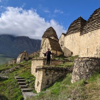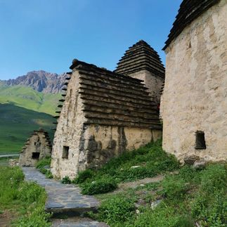 Безусловно, одна из изюминок сегодняшней экскурсии это Даргавс! Те самые необычные, белые домики с коричневыми крышами, которые так привлекают ваше внимание на фотографиях. Даргавс - визитная карточка Осетии. Это некрополь, который насчитывает около 90 склепов построенных в виде пирамид.