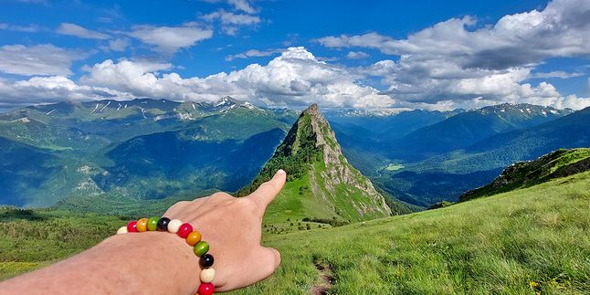 Утром во второй день тура начнем рассматривать территорию вокруг! Выйдя за пределы лагеря, Да-да! Сегодня едем к той самой необычной скале, которая притягивает взгляд на фото! Около 4 километра пути, 800 м по вертикали и мы на месте! Пик Закан или Тещин зуб весьма и весьма эффектный пик. Причем, пока не дойдешь до самой верхней смотровой ты видишь все, что угодно: долину Большой Лабы, Имеретинскую долину, селение Закан, роскошные хребты вокруг. Но ты до последнего не видишь тот самый открыточный вид, ради которого шел сюда! И только поднявшись на саааамую верхнюю смотровую площадку, можно увидеть пик Закан во всей красе.